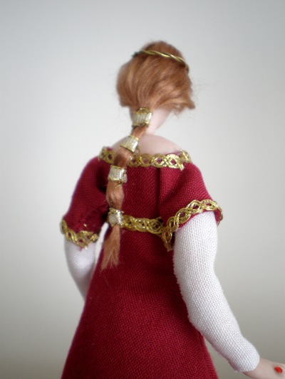Her gown is based on a Frankish style dress I found at Arm Street. Her shoes are of my own design, in an attempt to cover up her modern heels.